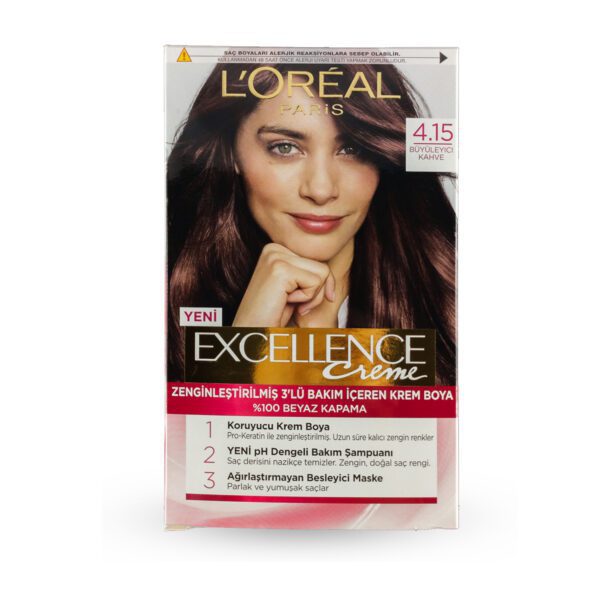 کیت رنگ مو قهوه ای لورال شماره 4.15 مدل Excellence