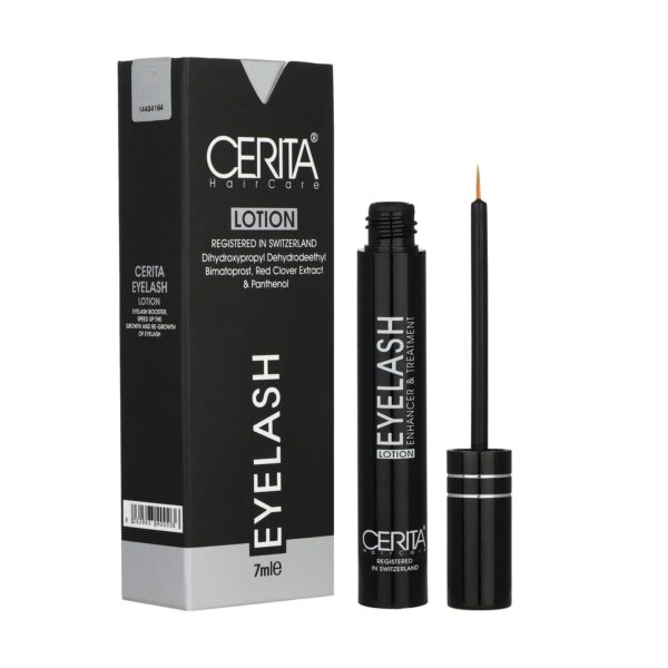 محلول تقویت کننده مژه سریتا حجم 7 میل برای درمان ریزش مژه و افزایش طول، حجم و ضخامت آن ها است. یکی از ترکیبات به کار رفته در این محصول شبدر قرمز است که با داشتن خاصیت آنتی اکسیدانی باعث مهار رادیکال‌های آزاد می‌شود. این محصول به واسطه داشتن ویتامین‌های B3 و B5 علاوه بر افزایش انرژی رسانی به تارهای مژه باعث رطوبت رسانی به آن ها و جلوگیری از خشکی مژه می‌شود.